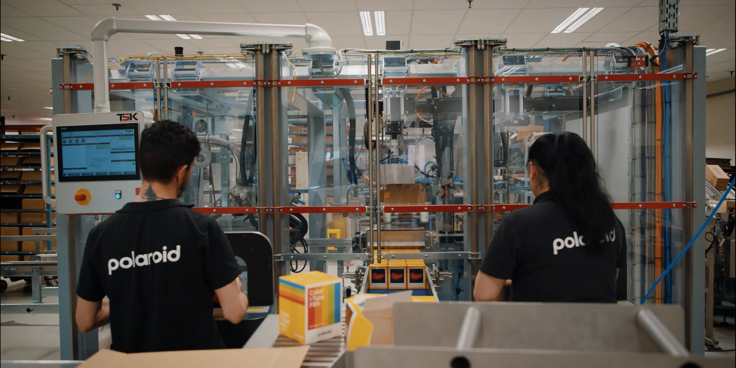 “Hiervoor hadden we een nieuwe verpakkingslijn nodig,” vertelt Jeroen Meuleman, engineer bij Polaroid. “Een lijn die niet alleen de packs kon bundelen, maar ook kon verpakken in een wrap-around doos voor transport. Een wrap-around doos is een kartonnen doos die om het product heen gewikkeld wordt. Het doosmateriaal wordt plat aangeleverd, het product wordt erin geplaatst en daarna wordt het karton om het product gevouwen en afgesloten. En dat alles op een manier die aansluit bij onze bestaande processen.”